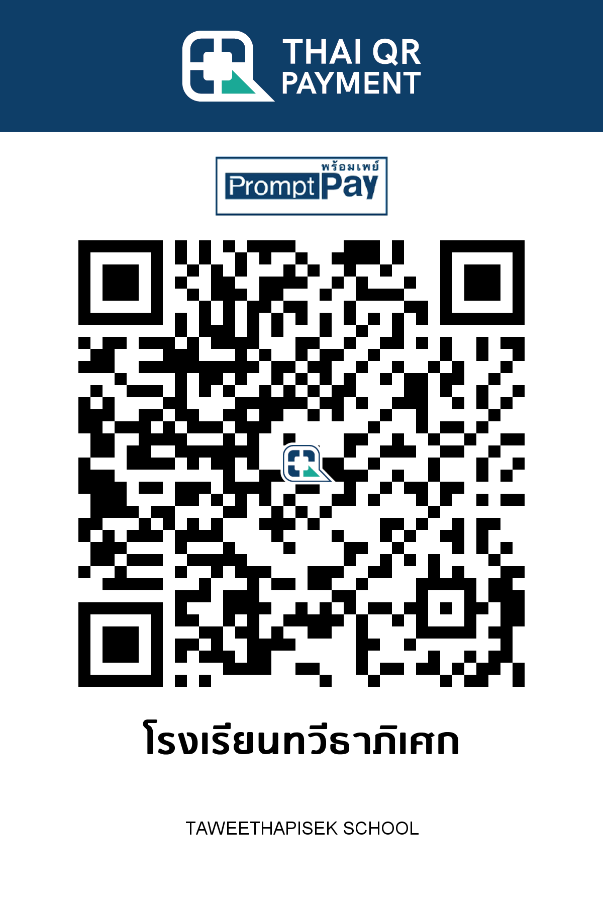2.1 ท่านสามารถใช้ mobile Banking ของธนาคาร scan qr code ด้านล่าง เพื่อโอนเงินบริจาคให้โรงเรียนทวีธาภิเศก ซึ่งข้อมูลการบริจาคจะบันทึกลงระบบ e donation ของกรมสรรพกรโดยอัตโนมัติ ท่านสามารถใช้สิทธิลดหย่อนภาษี โดยไม่ต้องใช้ใบเสร็จรับเงินหรือใบอนุโมทนาบัตร